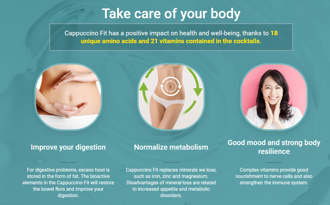 Why do people pay attention to products like Cappuccino Fit? First of all, because nowadays the problem of overweight is facing many people. Improper diet, fast level of life, hard work and much more leads to people gaining weight and cannot cope with this problem without the help of appropriate drugs. Reviews about Cappuccino Fit cocktail suggest that this method is very effective. Many people want to buy Cappuccino Fit for weight loss in the hope of a positive result. And the result will certainly be positive. After all, this medicine is designed specifically for such purposes.